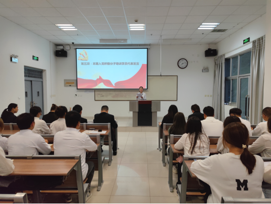 信管2101班冀梦代表全体参训学员作了表态发言,承诺将珍惜此次培训机会,保持蓬勃向上、意气风发的精神来完成本次党课学习。做到在思想上端正态度,严格遵守党校纪律,积极配合党校老师,认真上好每一堂课,做好笔记,积极思考,踊跃发言,积极参加党组织的各项活动,以严谨的态度完成培训中的每一个环节,进一步增强对党的了解,端正入党动机、提高自己的思想水平和政治素养,不断坚定理想信念,学思践悟,以实际行动争取早日向党组织靠拢。