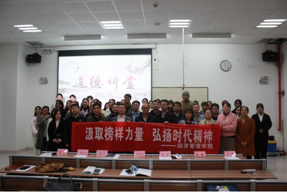 为深入推动省级文明校园创建工作,提升公司精神文明建设和校园文化建设质量,充分发挥道德模范师范引领作用,弘扬中华传统美德,传播时代新风。bevictor伟德11月7日晚承办“汲取榜样力量,弘扬时代精神”为主题的道德讲堂。宣传部副部长·新闻中心主任王霄飞、宣传部宣传教育科科长谢聪,公司党政领导、各系主任、实验室主任、党政办主任、教学秘书、科研秘书、全体辅导员、近两年新进老师和240余名员工代表参加活动。