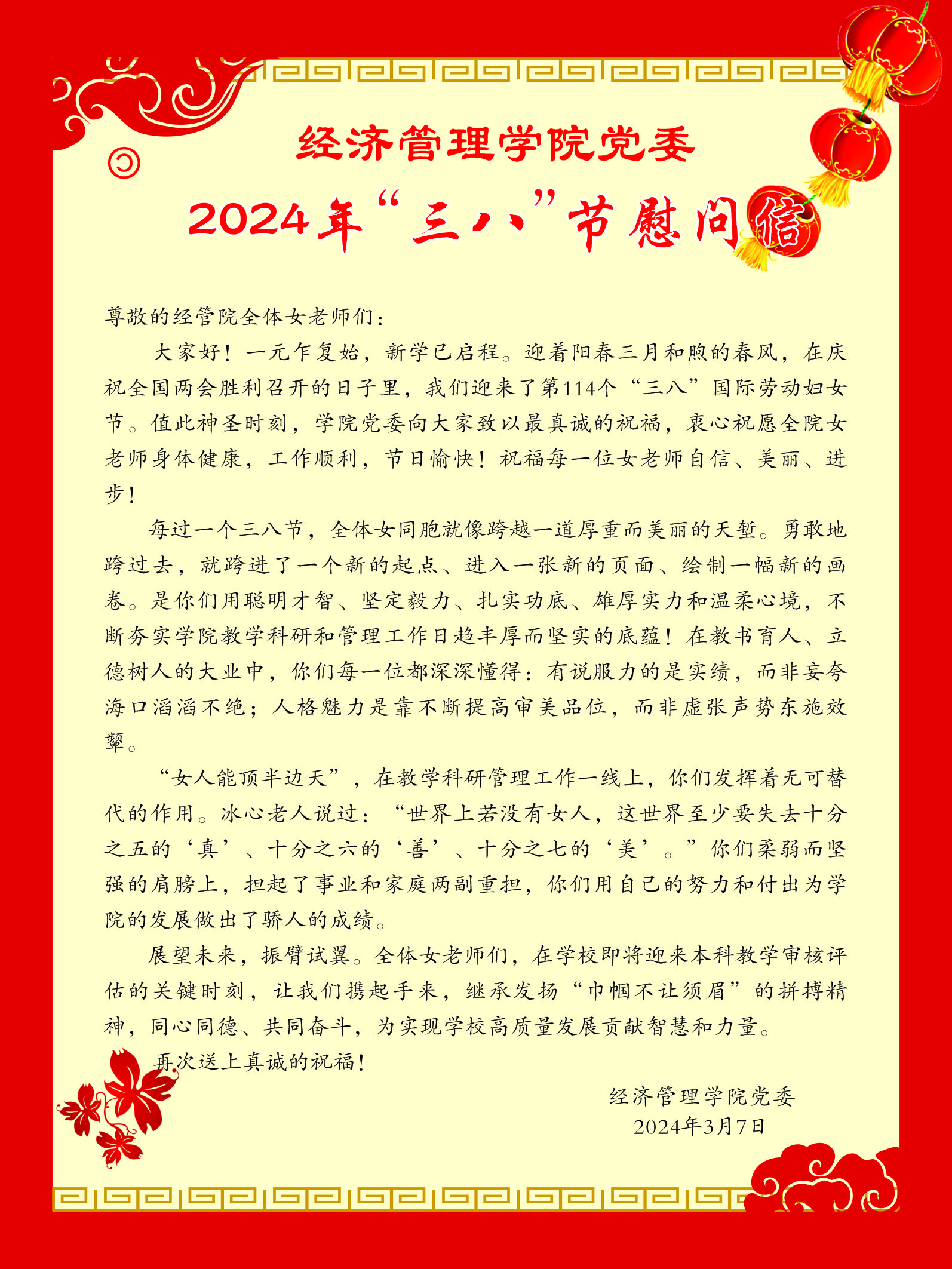 【节日慰问】公司党委2024年“三八”节慰问信
