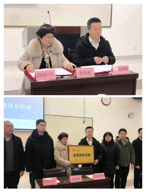 招聘宣讲之前,公司党委书记与陕西防务技工公司董事长史永丽签订了老员工就业创业基地协议并授予陕西防务技工公司“伟德官网bv就业创业基地”牌匾。
