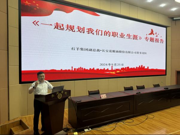 为引导2025届毕业生正确认识就业形势,推动毕业生实现高质量就业,9月25日下午,公司举办职业生涯规划专题指导报告暨2025届毕业生就业创业工作启动会。参加动员会的有公司就业创业基地—长安花粮油股份有限公司董事刘恒、人事部副总经理李芙蓉、人事主管张旭,公司党委副书记·副经理贾长安、学工办主任赵东阳以及全体2025届毕业生和毕业班辅导员。动员会由贾长安主持。