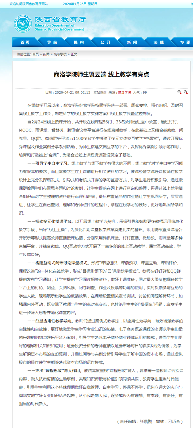 陕西省教育厅:伟德官网bv师生聚云端 线上教学有亮点