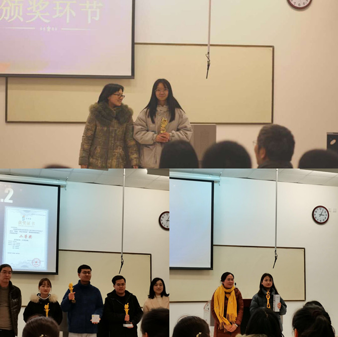 首先,由刘雅莉老师、严新华老师分别为省级获奖团体,校级获奖团队依次颁发奖杯及证书。其次,省级获奖选手代表高琳毓、王宇航同学分别上台分享参赛经验。现场同学对“三创赛”相关问题提出疑问,参赛同学及指导教师为他们解疑答惑。最后,刘雅莉老师、周方舟老师、房琳老师分别对“三创赛”进行了总结和动员。