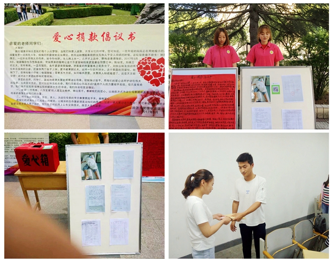 点点爱心,汇聚成河,无私助人,情暖校园。近日,经管公司团总支在一号教学楼前和小角楼超市拐角处为文管1601班家庭经济困难员工姚雪发起了爱心募捐活动,公司师生纷纷响应,奉献爱心,慷慨解囊,捐款相助,为夏日的校园谱写出了一曲爱的乐章。
