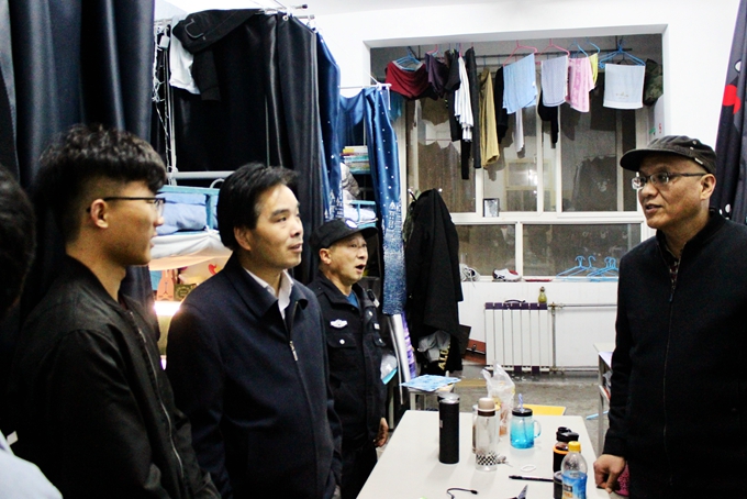 10月31日晚,公司党总支书记赵健、副经理·副书记贾长安以及全体辅导员一行在保卫处工作人员的陪同下深入员工宿舍,认真检查宿舍安全工作。