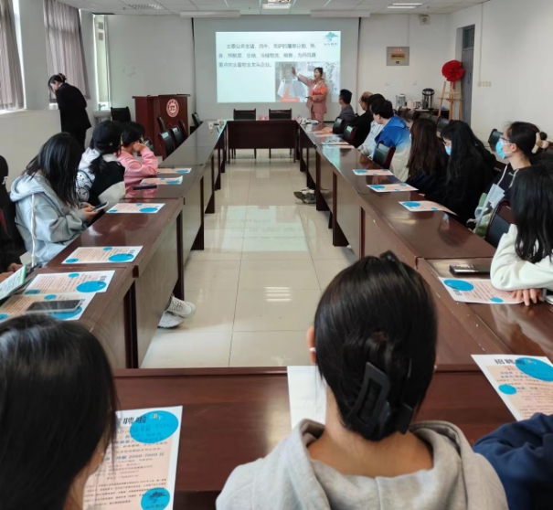 招聘会现场,企业代表史娇做了精彩的企业宣讲,从公司规模、企业文化、企业使命、企业市场开发方向、主推产品线、企业发展规划等几个方面详细介绍了企业的基本情况。丹凤县山水致诚食品有限公司成立于2020年6月,位于商镇北坪工业园区,总占地40亩,生产车间12000㎡、冷藏库4500㎡、研发楼3500㎡、宿舍楼3500㎡;日处理500吨污水处理站1座,总投资1.8亿元。主要业务涉及生猪、肉牛、毛驴的屠宰分割、熟食、预制菜、仓储、冷链物流、销售,为丹凤县重点农业畜牧业龙头企业。