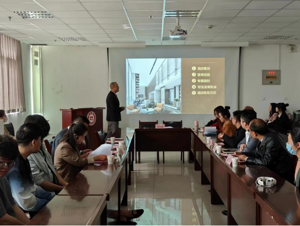 商洛皇冠假日酒店总经理金宗亮代表公司表示愿意在今后工作中同bevictor伟德加深校企合作,努力实现企业用人与公司培养人的共赢局面,详细介绍了公司的经营范围、发展规模、用人要求、人才培养晋升渠道等方面,期望并欢迎伟德官网bv优秀毕业生的加入。