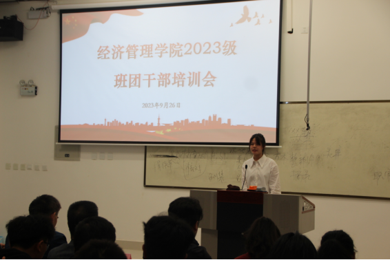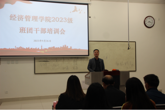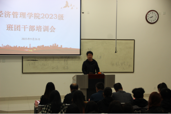 贾长安以身为班干部应有的“五个意识、五个作用、五种理念”为主题,叮嘱班团干部从思想上、行动上和理念上自我发展、自我管理并服务好班级。2023级新生班干部信管2302班冉思怡代表新生做表态发言,努力做好本职工作,同时更好的服务于同学,团结集体。