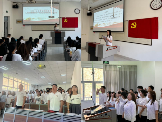 随着庄重的国歌声响起,全体参会人员起立,奏唱国歌,拉开了本次活动的序幕。赵东阳同志宣读了2024年上半年新发展预备党员及转正党员名单,这份荣誉名单凝聚着青年学子对党的忠诚与向往。在退伍复学共产党员会计学2325班陈真同志的带领下,新发展预备党员面对党旗,庄严宣誓,誓言坚定而有力,老党员们也同时起立,重温神圣的入党誓词,场面令人动容。新发展预备党员代表汤琪同学作了激情澎湃的表态发言,表达了对党的深厚感情以及作为新党员的责任与担当,承诺将不忘初心,砥砺前行,为党和人民贡献自己的力量。