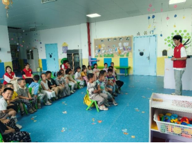 最后,志愿者为小朋友们分发安全知识书籍并合影留念。通过本次活动不仅提高了幼儿园小朋友的安全意识和自救互救能力,也加强了老员工与幼儿园之间的联系合作和社会对儿童安全教育的重视。