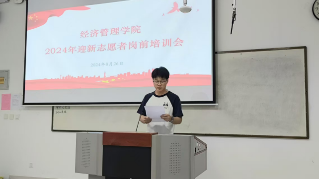 为确保新生报到入学平稳安全有序,扎实做好新生报到迎接工作。2024年8月26日,2024年迎新志愿者岗前培训会顺利召开。公司党委书记高扩昌、学工办主任赵东阳、团总支书记石琳以及全体辅导员、迎新志愿者们共同参加了此次会议。会议由院团总支员工会主席刘奕喆同学主持。