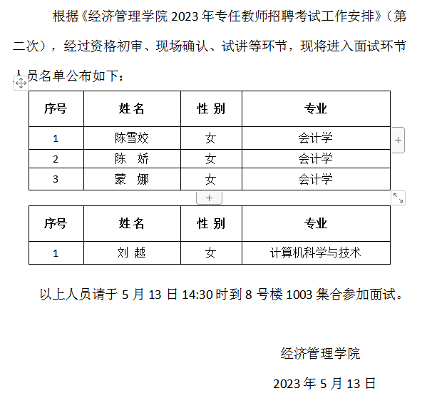 【招聘公示】bevictor伟德关于公布2023年专任教师招聘考试进入面试环节人员名单的通知
