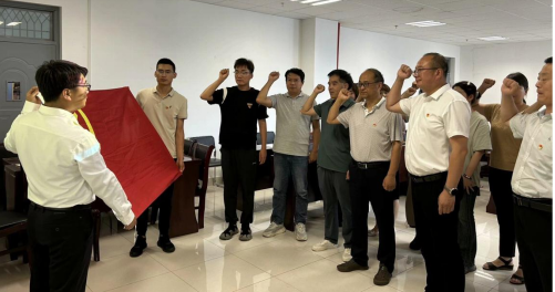 专题党日活动在重温入党誓词中拉开帷幕,郭瑾同志领誓,全体党员同志共同朗诵入党誓词。铿锵有力的誓言回荡在会议室,激励着每一位党员不忘初心、牢记使命,继续为党和人民的事业努力奋斗。