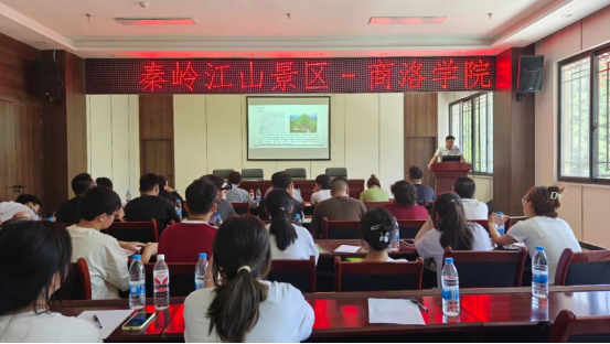 首站,同学们来到了位于秦岭南麓的秦岭江山风景区。这里不仅是自然风光的宝库,更是文化和历史的沉淀之地。在景区吉晨栋经理的热情接待下,同学们漫步于古木参天的小径、穿梭于山林之间,欣赏着江山如画的美景,感受大自然的鬼斧神工;同时聆听着对于当地商州非遗、商州民俗、风土人情的讲解,感受当地不一样的风土文化。