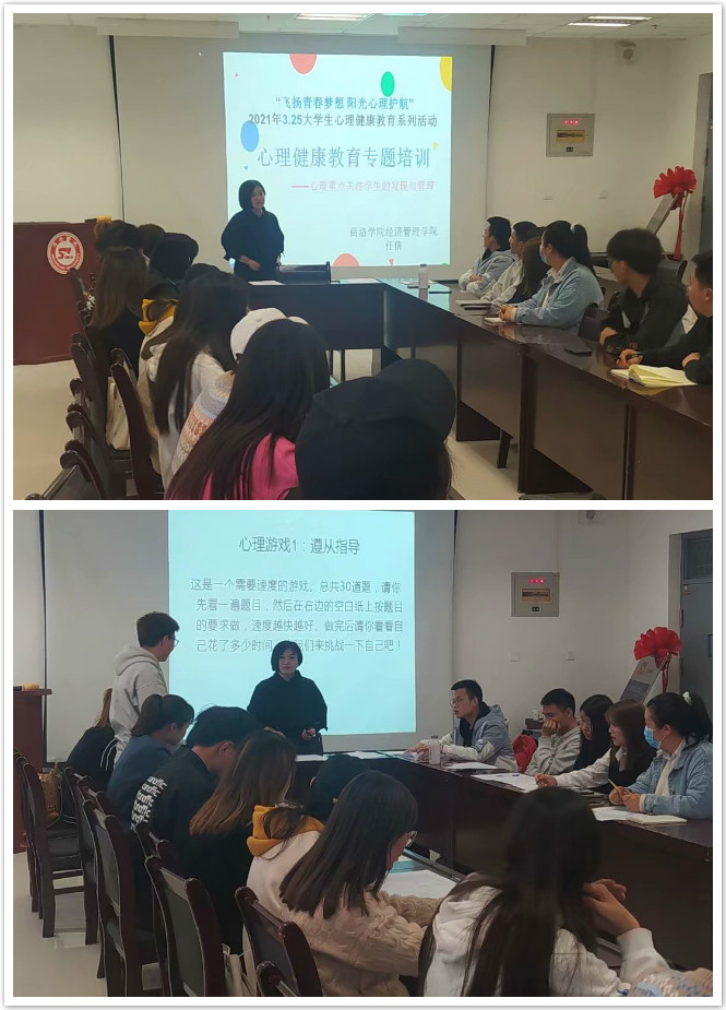 为进一步增强老员工心理健康教育的实效性,深化落实《关于开展第六届陕西高校“阳光护航”心理育人宣传季实践活动的通知》要求,公司在全校范围内开展 “ 阳光护航引领心理成长,心理育人追逐青春梦想”为主题教育活动。经管公司于2021年3月24日下午在新综合教学楼10-03室举行“3.25心理健康教育宣传季系列活动”启动仪式,并面向全院心理委员开展了“飞扬青春梦想 阳光心理护航”主题的“爱心理助力团”心理委员专题培训。全体辅导员、全院心理委员参加本次活动。