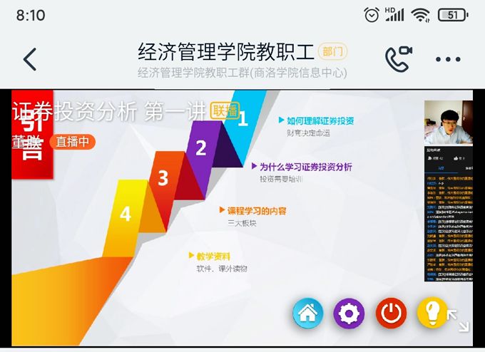公司党委书记龙治刚以及公司党委委员教务处处长李超、副处长高扩昌分别参与了公司首日第一节课的在线教学工作,并给予了高度肯定和赞许。王怡经理、周小婷副经理、教学秘书王欣欣全天参与了公司首日在线教学。在首日教学过程中,所有任课教师都能结合疫情给同学们传播正能量以及传达公司、公司的工作安排和对员工的关切和爱护。从教师授课、员工学习和讨论互动的照片来看,所有任课教师均严格遵守公司统一安排,规范开展在线教学,课堂组织有序,员工互动积极,在线教学反馈结果较好。