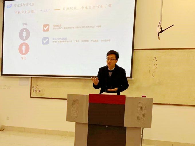 董朕博士以自己的切身经历向同学们讲述了考研的宝贵经验,他认为正确的方法、不懈的努力、精准的择校、良好的心态是考研成功的必备武器。他的报告也是深入浅出、内涵丰富、十分精彩,具有很强的实践指导意义,令同学们回味无穷、受益匪浅。