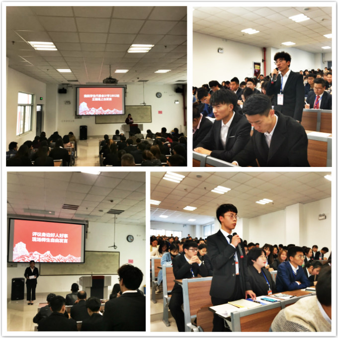 本次道德讲堂内容共分为五个部分:唱歌曲、诵经典、学模范、讲心得、谈感悟。活动现场,全体师生饱含深情同唱《我和我的祖国》,党员代表王佳同学诵读红色家书:《刘少奇家书》,一起观看视频,感受时代楷模张富清、道德模范王继才的先进事迹,重温《开国大典》影像纪录片,2019年国家奖学金获得者,会计学1802班王璐瑶同学分享了自己的心得体会,随后师生们畅谈了自己的感悟。