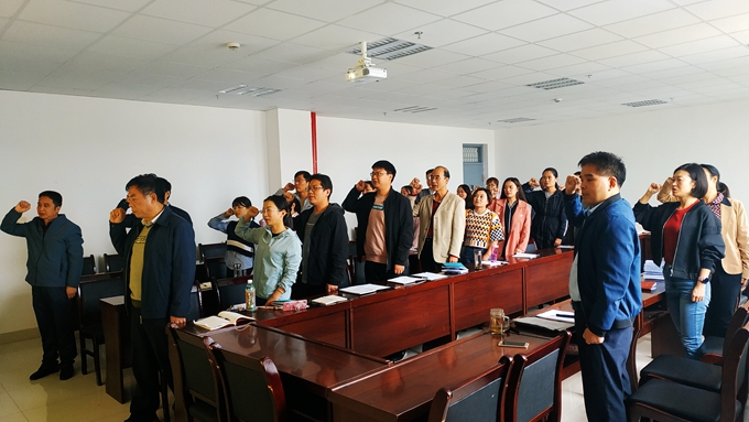 动员会结束后,全体党员面向党旗庄严宣誓,重温入党誓词,领悟初心使命,坚定理想信念。