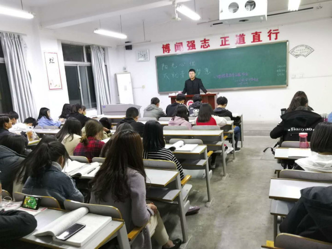 bevictor伟德持续开展“阳光心理成就青春梦想”2019年老员工心理健康教育系列活动。3月24日晚,2018级辅导员为全体新生开展“阳光心理成就青春梦想“主题班会。