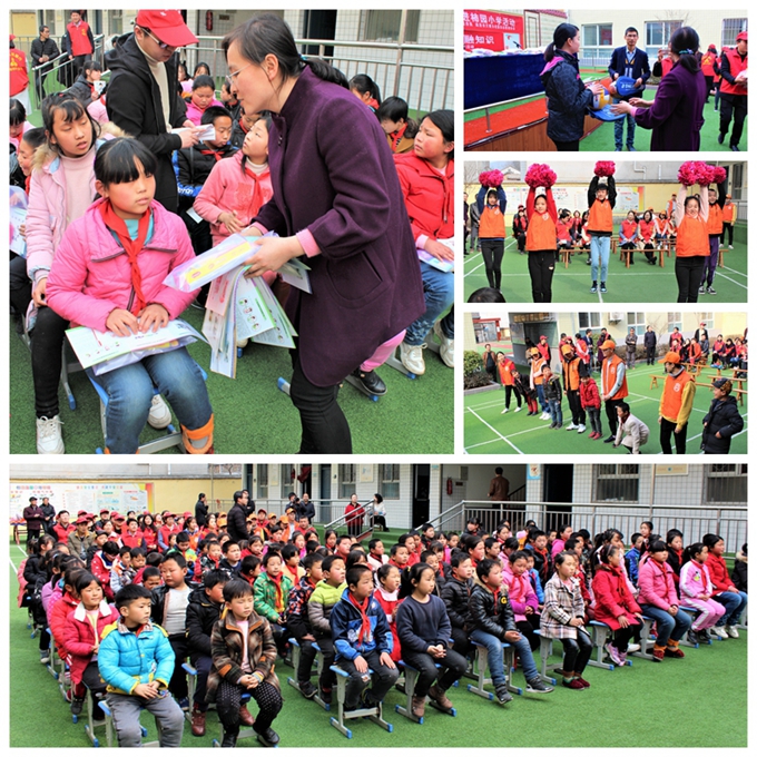随后王宝珍老师和王程老师代表本次志愿者服务队向柿园小学捐赠体育用品和学习用品,志愿者服务队的成员给孩子们表演了花球啦啦操、诗朗诵等节目,并和孩子们进行亲切互动,一起玩蹲萝卜游戏,现场沉浸在一片欢声笑语之中,孩子们脸上挂满了初春阳光般的微笑。
