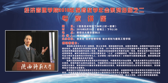 9月19日,国家级教学名师、全国优秀教师、陕西师范大学二级教授傅钢善应邀来到公司指导课堂教学,并为公司师生做了《信息技术环境下如何上好一堂课》的专题讲座。