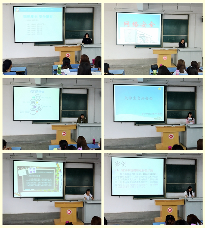 为了普及老员工安全防范知识、增强老员工校园安全意识,2016年5月6日上午,在经管公司辅导员任倩的精心组织下2015级会计学专业“拥抱夏季,安全随行” 安全教育报告会在一号楼多媒体2如期举行。本次报告会由辅导员任倩主持,194名员工参加了此次报告会。