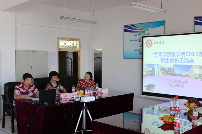9月6日下午,经济与管理公司在一号教学楼五楼教研室举行2015级新生家长见面会。经理樊景博、党总支书记鲁绵茸、副经理王怡及相关负责教师与2015级新生家长共聚一堂,共同探讨培养员工成长成才的新思路,新方法,副经理王怡主持见面会。