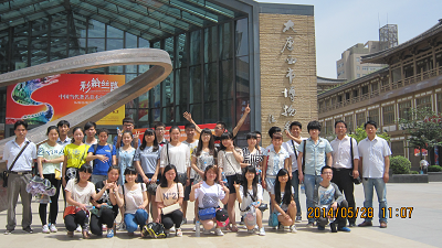 5月28日2013级文化产业管理专业61名员工在老师带领下到西安大唐西市、陕西历史博物馆等文化机构参观实习。实地参观大唐西市丝路风情街、丝绸之路旅游文化展和陕西精品文物展。