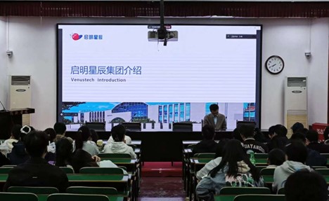 本次招聘会主讲人阵容强大,启明星辰产教融合中心总监孙明虽人在北京,却通过线上方式为同学们进行了精彩的企业介绍。启明星辰蒙安全产线高级工程师陈子书则围绕鸿蒙发展趋势和就业前景,为同学们带来了极具价值的分享。