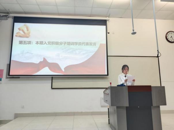 开班典礼在庄严的国歌声中拉开帷幕,任倩宣读了第十期入党积极分子培训班学员名单,张莹莹宣读培训班班主任、班委名单,赵东阳宣读了第十一期入党积极分子培训班培训安排。本期积极分子培训学员代表赵思琪作表态发言,承诺将珍惜此次培训机会,在思想上提高认识,在行动上端正态度,严格遵守党校纪律,认真上好每一堂课,端正入党动机、提高自己的思想水平和政治素养,不断坚定理想信念,学思践悟,以实际行动争取早日向党组织靠拢。