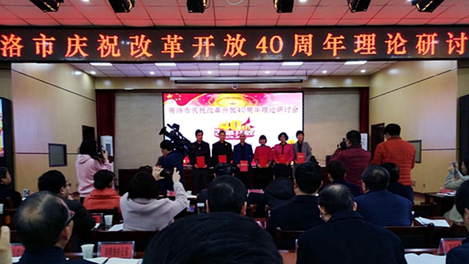 公司2篇论文获评“商洛市庆祝改革开放40周年优秀理论文章” 发布时间:2018-12-28 点击: 12月28日,商洛市庆祝改革开放40周年理论研讨会在市委党校召开。市委书记陈俊出席会议并讲话,市委常委、宣传部部长马生龙主持会议。会议表彰了“商洛市庆祝改革开放40周年优秀理论文章”,公司推荐的2篇理论文章受到表彰,其中一等奖1篇、三等奖1篇。 副经理·副书记贾长安的论文《商洛40年产业变迁及转型升级的思考》获得一等奖,并在会上作交流发言;副经理王怡的论文《新时期县域精准脱贫工作的重点转变与对策建议》获得三等奖。 (图/文 郭萌 编辑/郭萌 审核/王怡)