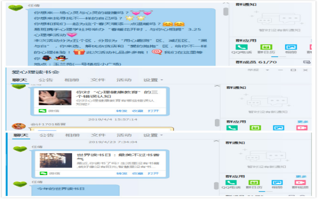 网络社区+心理育人:利用老员工对网络媒体的独特的喜爱,把心理育人渗透到老员工的生活微空间,打造线上线下心理育人的同心圆。网络心理育人将从认知和情感上丰富老员工的心理体验,为老员工提供便捷的心理服务,增强与员工之间的有效互动,打破心理育人的时空限制,实现心理健康教育资源的共享,将提高心理育人的效率。利用QQ和微信咨询和线上团体辅导等建立“一对一”或“一对多”的实时互动交流平台,及时了解员工的心理及情感动态,实现“一对一”或“一对多”的实时交流,为有需要求助的员工提供便利服务。